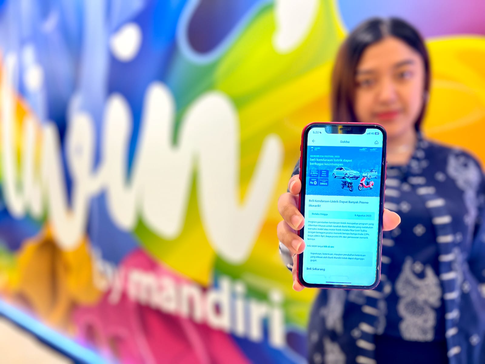 Pada program ini, nasabah Bank Mandiri bisa mendapatkan berbagai promo menarik saat membeli mobil maupun motor listrik melalui fitur Livin’ Sukha pada aplikasi Livin’ by Mandiri dan Kopra by Mandiri. Promo berlaku untuk pembelian mobil listrik merek Wuling, BMW dan Lexus, serta untuk motor listrik merek Gesits dan Volta.