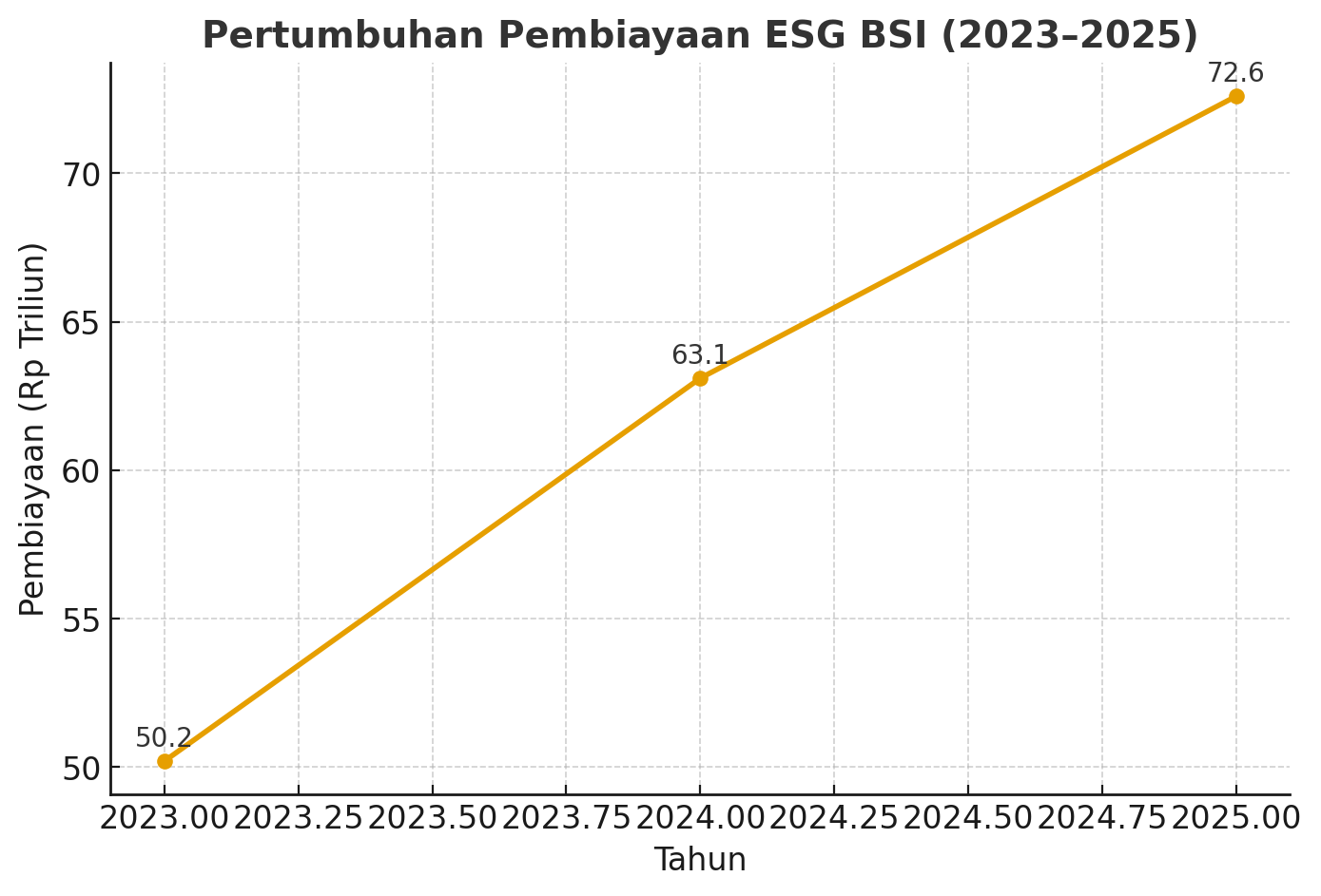 Dari pembiayaan hijau hingga pemberdayaan UMKM, dari inovasi digital BYOND by BSI hingga operasional ramah lingkungan, langkah-langkah BSI menegaskan bahwa bank syariah mampu berdiri sejajar dengan pemain global dalam menata masa depan ekonomi yang lebih adil dan berkelanjutan, melalui komitmen pada prinsip Environmental, Social, and Governance (ESG).