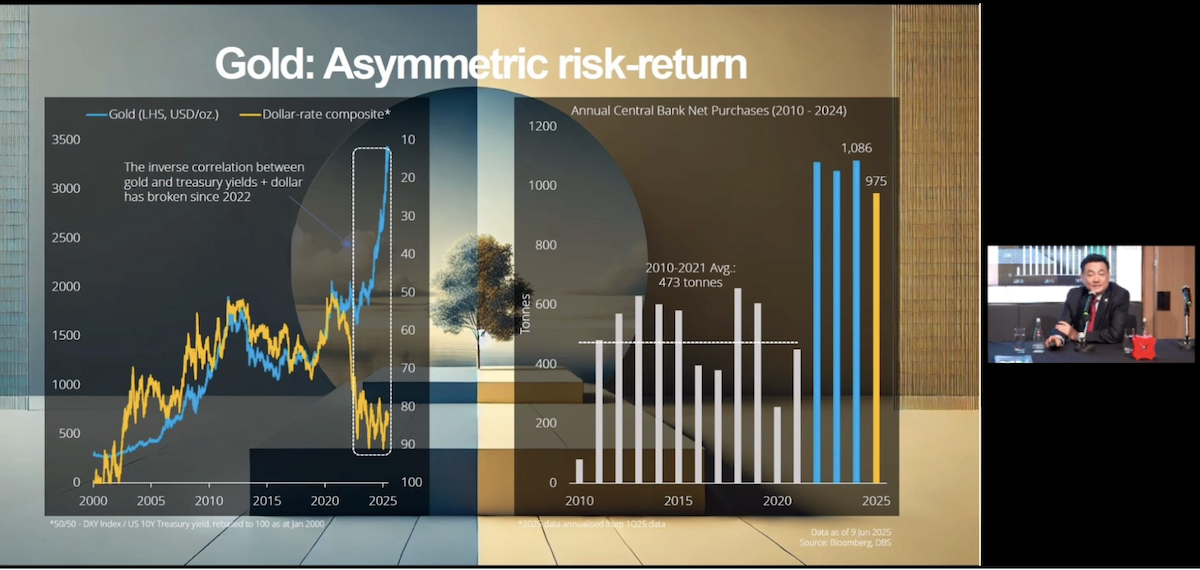 Di tengah pelonggaran fiskal dan moneter AS yang bersamaan, Hou menyoroti pentingnya diversifikasi melalui aset riil. Infrastruktur privat dan emas menjadi dua fokus utama.
