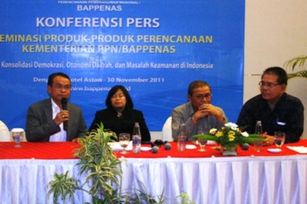 Denpasar-Proses konsolidasi demokrasi menjadi salah satu solusi terbaik untuk memecahkan berbagai persoalan bangsa terutama masalah ekonomi bangsa dan berbagai bentuk korupsi dan penyelewengan dalam penyelenggaraan negara. “Konsensus nasional kita menyepakati bahwa konsolidasi demokrasi merupakan suatu keharusan untuk memelihara keberlanjutan pembangunan nasional yang aspiratif dan partisipatif,” ujar Menteri PPN/Kepala Bappenas Armida S Alisjahbana dalam paparan kuncinya yang disampaikan Plh. Deputi Bidang Politik, Hukum dan Pertahanan Bappenas Prasetijono Widjojo pada Seminar Nasional di Denpasar, Bali (30/11).