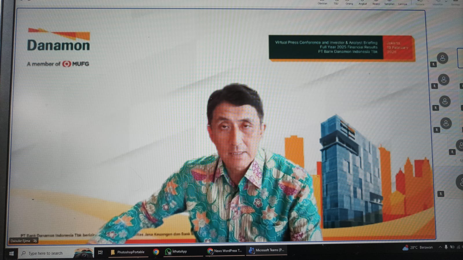 Direktur Utama Danamon Daisuke Ejima mengatakan perseroan akan melanjutkan strategi pertumbuhan berbasis ekosistem dan transformasi digital pada 2026. Tahun lalu, Danamon juga memperoleh persetujuan sebagai perusahaan induk konglomerasi keuangan (PIKK) dari Otoritas Jasa Keuangan untuk Konglomerasi Keuangan MUFG di Indonesia.