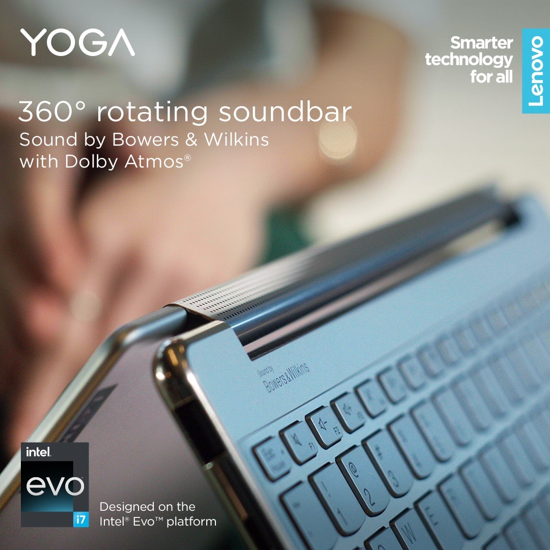 Yoga 9i didukung A.I. yang dibuat untuk mobilitas dengan penutup 3D glass dengan desain comfort-edge dari sasis 14.9mm (0,59in) yang berbeda dengan generasi sebelumnya. Laptop ini juga didesain lebih tipis dan ringan menampilkan kontur yang membulat dan halus untuk pengalaman pengguna yang lebih nyaman.