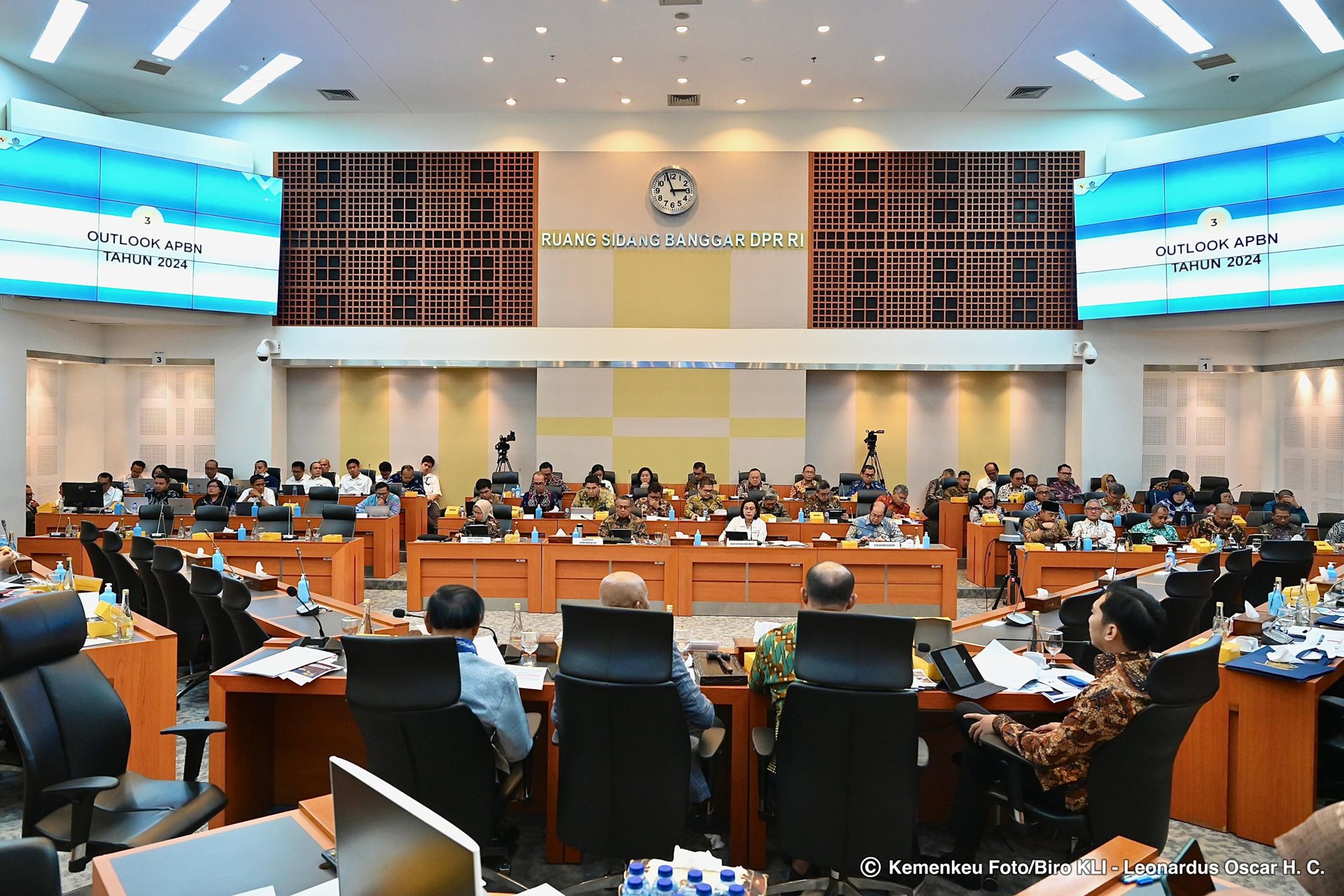 Hal tersebut disampaikan Menteri Keuangan (Menkeu), Sri Mulyani Indrawati, dalam Rapat Kerja dengan Badan Anggaran DPR RI dengan agenda Penyampaian Pokok-pokok Laporan Realisasi Semester I dan Prognosis Semester II APBN 2024, pada Senin (8/7/24).