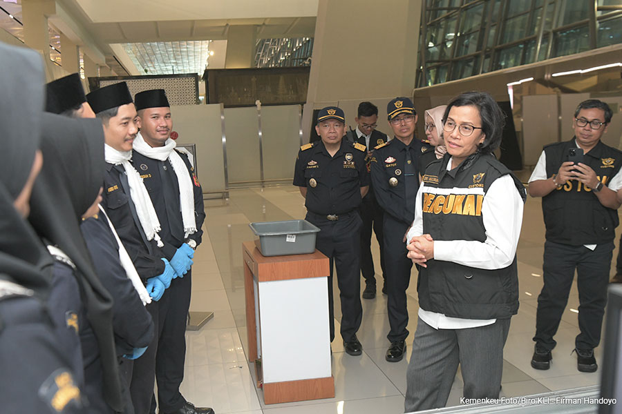 Ditengah peninjauan, Menkeu menyempatkan diri untuk berbincang dengan para pegawai bea dan cukai yang bertugas. Ia menyampaikan terima kasih atas kesiapan dan antusiasme seluruh jajaran DJBC dalam memberikan pelayanan kepada masyarakat.