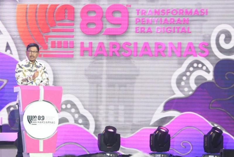 Dalam puncak peringatan Harsiarnas ke-89, Menteri Johnny didampingi Dirjen Sumber Daya Perangkat Pos dan Informatika Ismail, Dirjen Informasi dan Komunikasi Publik Usman Kansong; Direktur Utama Badan Aksesibilitas Telekomunikasi dan Informasi Anang Latif, dan Staf Khusus Menteri Rosarita Niken Widiastuti.