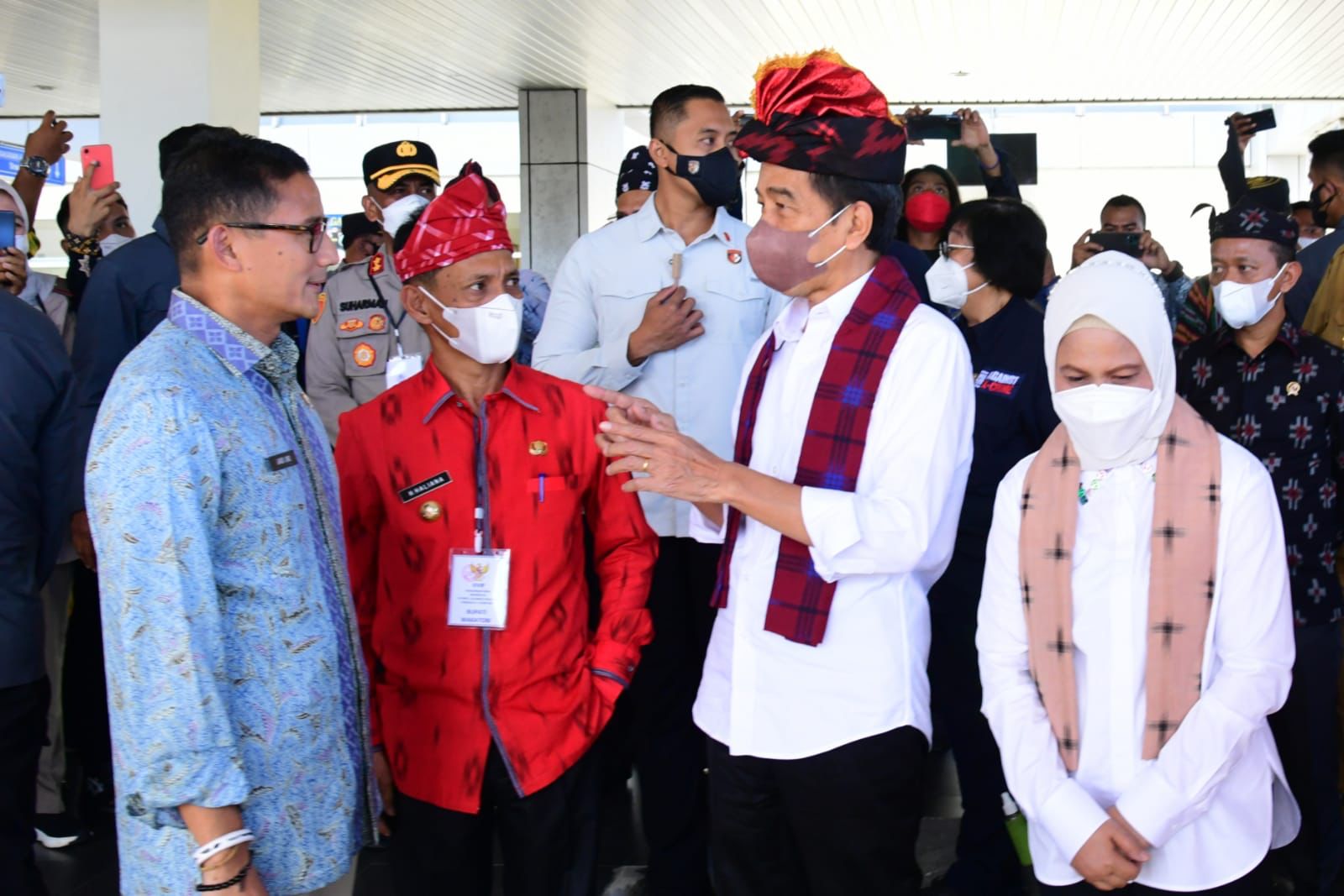 Setelah menghadiri pembukaan GTRA Summit 2022, Menparekraf Sandiaga dan Presiden Joko Widodo melakukan peninjauan ke layanan telemedicine dan expo UMKM yang ada di dalam kawasan Marina Togo Mowondu.