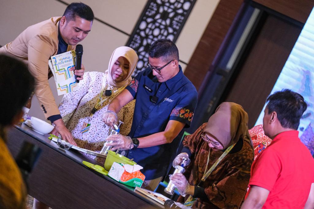 “Semuanya kita berikan penguatan mulai dari pelatihan, pendampingan, pemasaran, sampai pelatihan tata cara mengelola keuangan sehingga usaha mereka bisa berkembang menjadi usaha yang tahan goncangan dan juga bisa melalui potensi inflasi dan resesi,” kata Menparekraf Sandiaga.