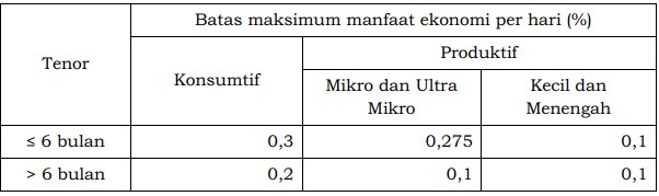 “Penetapan batas maksimum manfaat ekonomi (suku bunga) tersebut ditujukan demi memberikan pelindungan kepada masyarakat dari suku bunga tinggi sekaligus membedakan pinjaman online legal (Pindar) dengan yang ilegal (Pinjol),” kata Agusman.