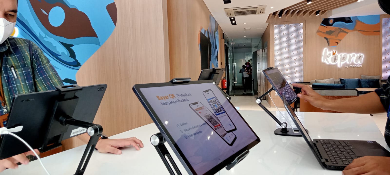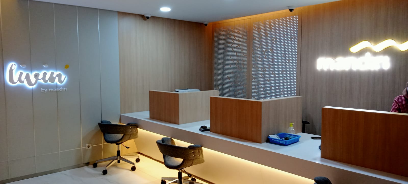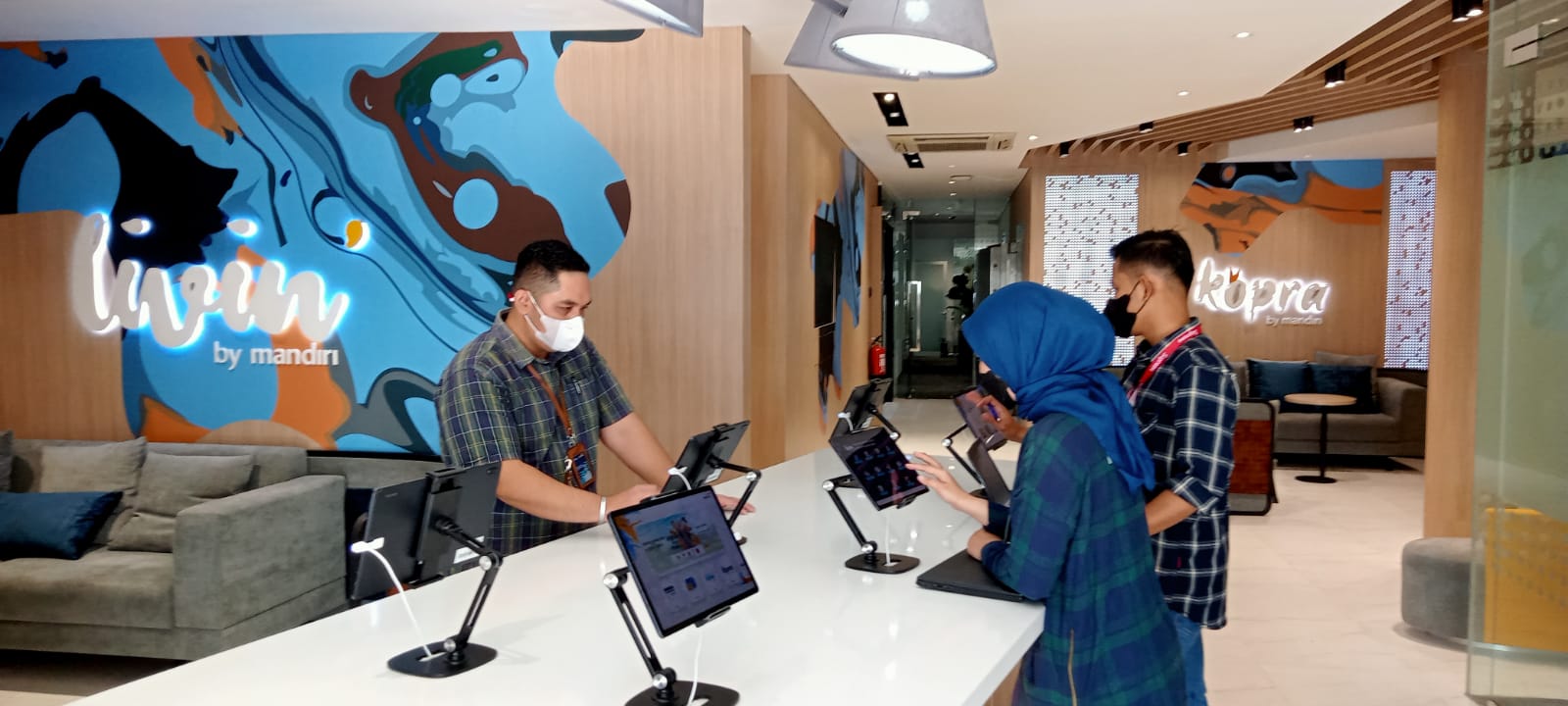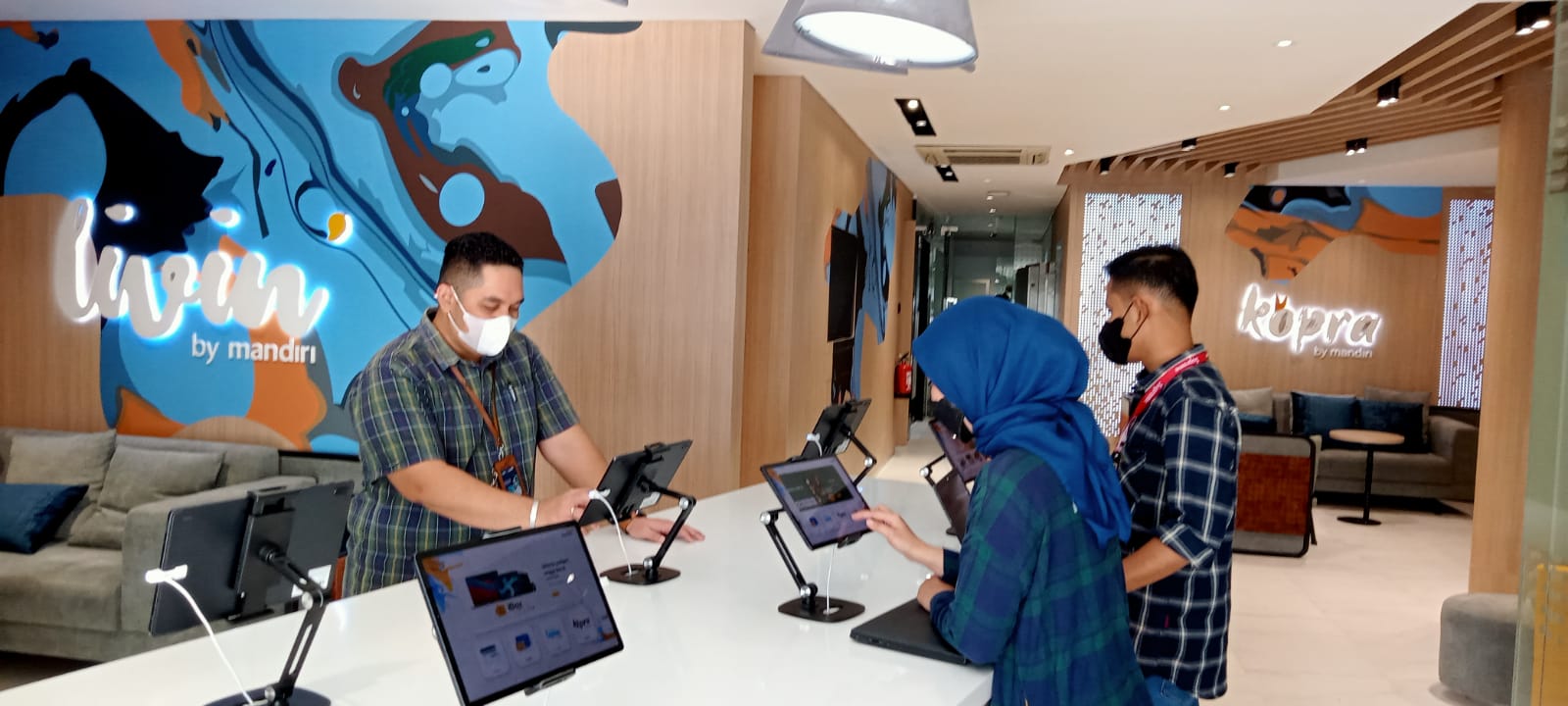 Smart Branch by Mandiri didesain untuk dapat mengakomodir kebutuhan nasabah berdasarkan tingkat adopsi digital dengan menghadirkan proses layanan yang terintegrasi dengan digital channel (Livin’ dan Kopra) dan self-service machine. Selain itu, nasabah yang memerlukan konsultasi produk dan layanan lainnya juga dapat langsung dibantu oleh General Banker (GB) yang bertugas. (Foto: Sandy/Stabilitas)