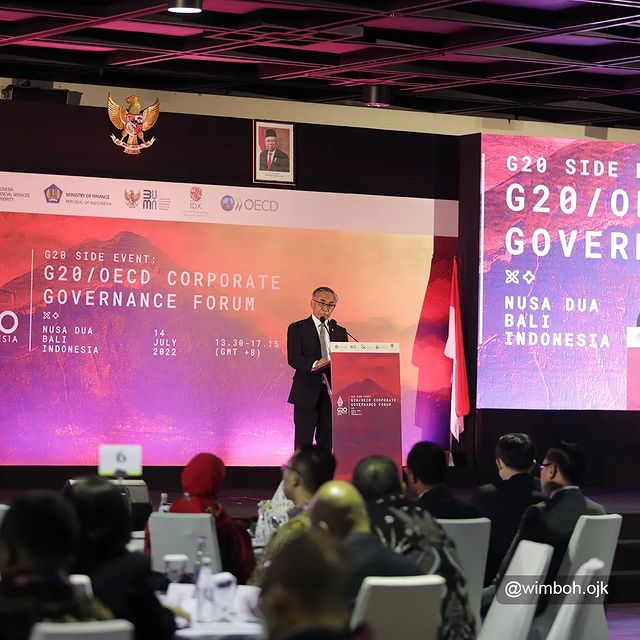 Hal ini disampaikan oleh Ketua Dewan Komisioner OJK Wimboh Santoso dalam pembukaan The G20/OECD Corporate Governance Forum yang merupakan side events dari G20 3rd Finance Ministers and Central Bank Governors (FMCBG) Meeting di Bali, pada Kamis (14/7/22).