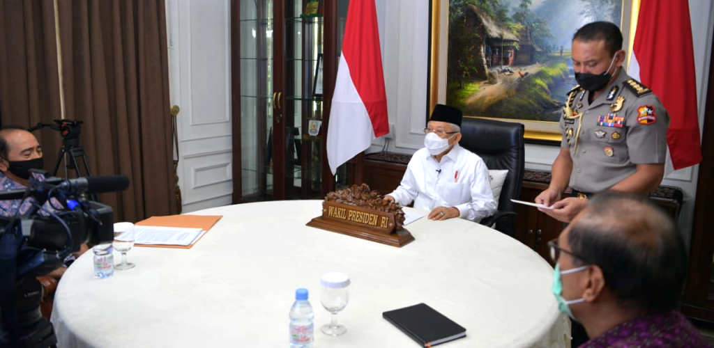 Sementara, Wapres didampingi oleh Plt. Kepala Sekretariat Wapres Ahmad Erani Yustika; Staf Khusus Wapres Bambang Widianto, Masduki Baidlowi, dan Lukmanul Hakim; Tim Ahli Wapres M. Fadhil Hasan dan Johan Tedja Surya; Asisten Deputi Ekonomi dan Keuangan Ahmad Lutfi; serta Asisten Staf Khusus Wapres Sholahudin Al Aiyub.